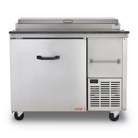 Mesa fría elaborada en acero inoxidable con placa de granito y 9 insertos de policarbonato de grado alimenticio y almacén y cajones refrigerados Placa de granito de 50 cm de...
