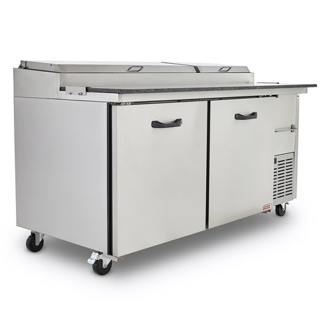 Mesa fria de preparacion hecha de granito. 9 insertos de policarbonato, siempre refrigerados, resistentes a impactos. Separadores de inserto en acero inoxidable. Control de Temperatura Digital (CTR). Parrilla posicional, mejor...